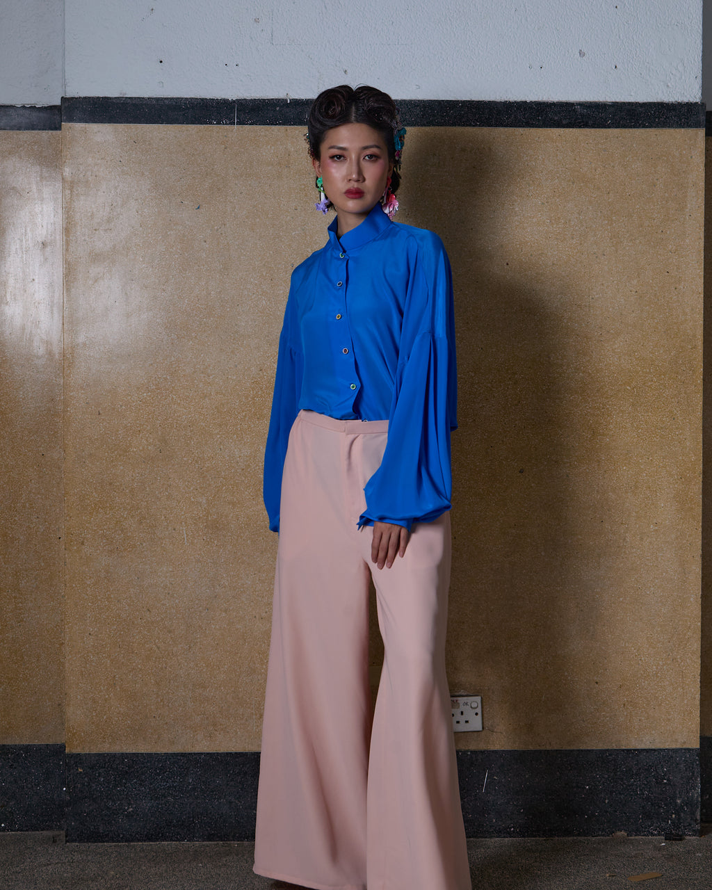 Complete the look, Check out: Mandarin Collar Puffy Sleeve Shirt - Blue