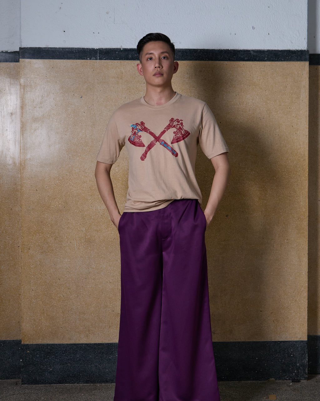 Complete the look, Check out: https://melindalooi.com/products/axe-gang-tshirt-beige?_pos=1&_sid=34bdfa035&_ss=r